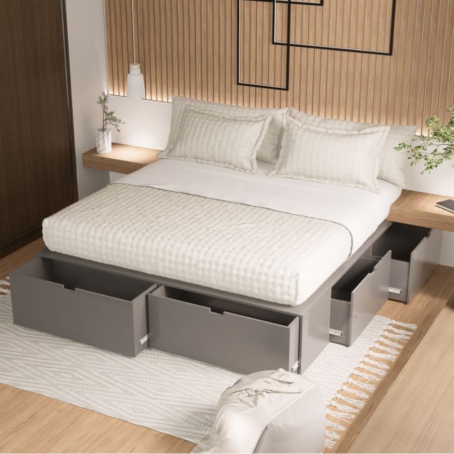 La cama Plus 1,40 combina diseño moderno y practicidad en un solo mueble. Cuenta con 6 amplios cajones laqueados que permiten guardar ropa, accesorios y más, aprovechando al máximo el espacio debajo del colchón. Con una estructura sólida y un acabado elegante, esta cama es perfecta para dormitorios con estilo contemporáneo. Disponible en colores Helsinki, Báltico y Grafito, ofrece funcionalidad sin resignar estética.