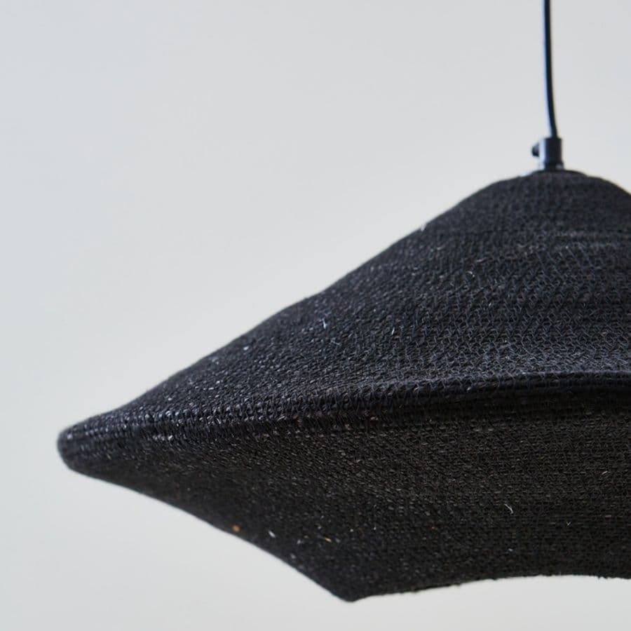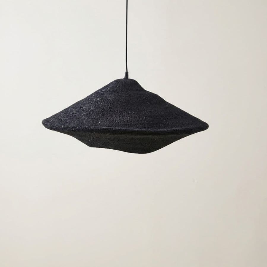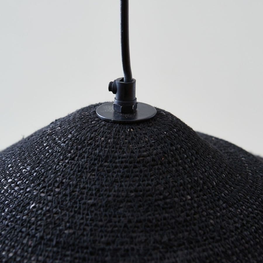 Una pantalla colgante en seagrass negro que aporta carácter y contraste. Funciona muy bien en comedores modernos, barras o rincones con paletas sobrias.