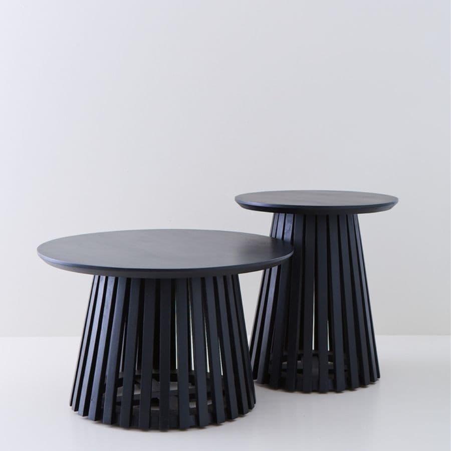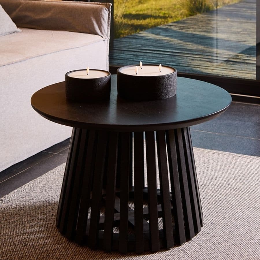 Una mesa ratona protagonista para livings modernos: el detalle varillado suma textura y diseño, y el acabado negro aporta contraste elegante. Ideal para combinar con sillones claros, alfombras naturales y accesorios en metal o cerámica.