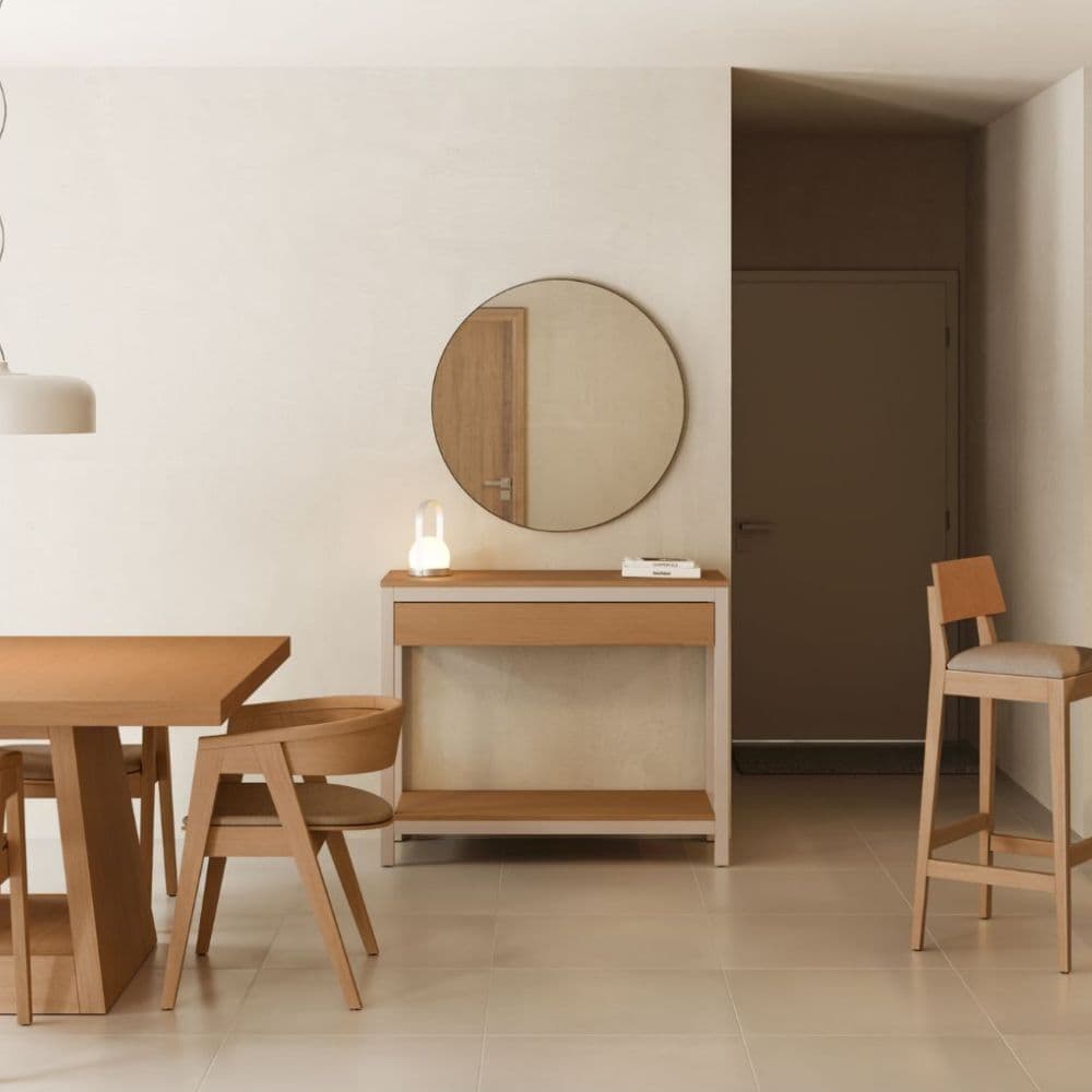 El recibidor Nacar es una pieza que combina diseño de vanguardia con nobleza de materiales. Fabricado con madera maciza de Eucaliptus Grandis, incorpora guías telescópicas y sistema de apertura Push open, asegurando funcionalidad con estética limpia. Su fabricación bajo procesos sustentables garantiza un producto premium, robusto y elegante, ideal para quienes buscan calidad en cada detalle del hogar.