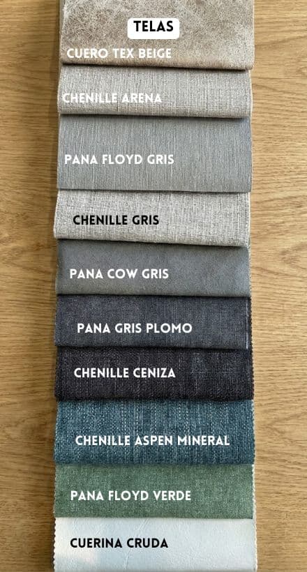 Lustres disponibles: Roble Leriex / Castaño / Nature / Almendra / Gris / Blanco